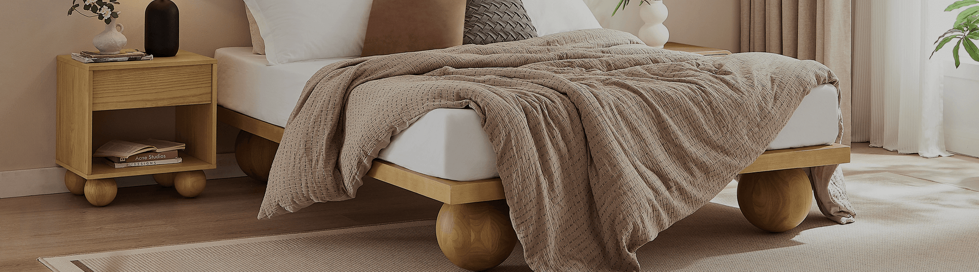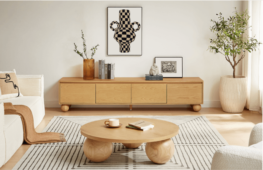 The round legs of the Ballicocollection are a unique addition to the Japandi style and highlight its modern aesthetic while allowing the unique wood grain to truly shine.