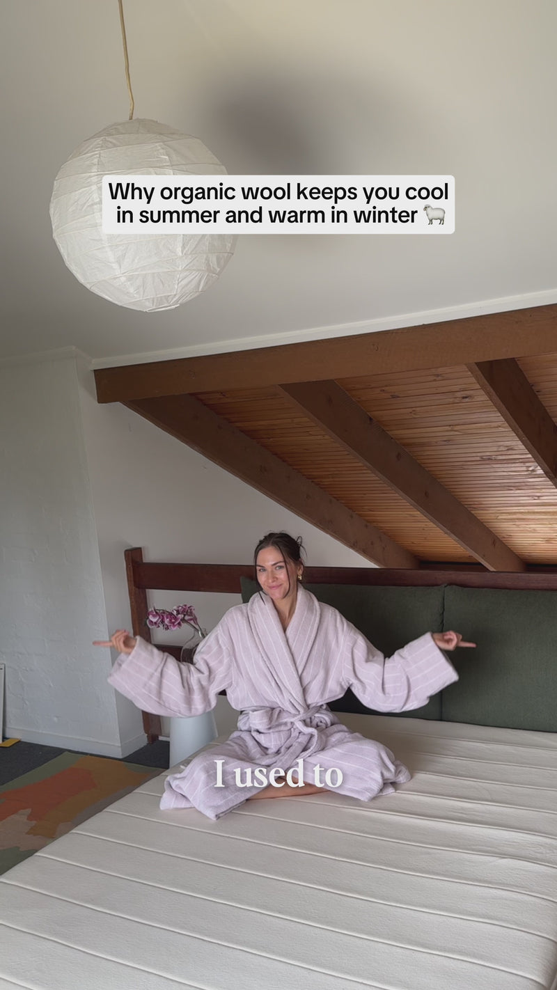 Natural wool layer that keeps you cool in summer, warm in winter, and dry all night.