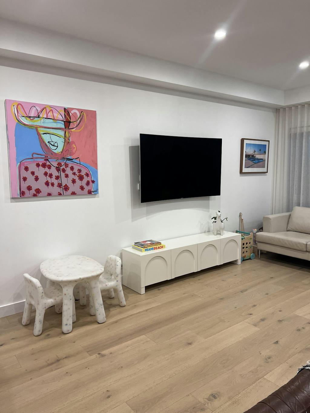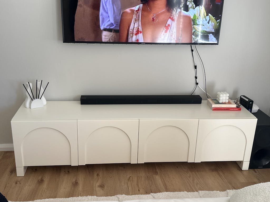 This unit looks great! It was hard to find a longer one for under our 75” tv for a reasonable price but this 225cm one is great for the price. Only think I would say is it looks much more white online, it has quiet a yellow undertone which I know it’s called “creamy” white but not what I was expecting.