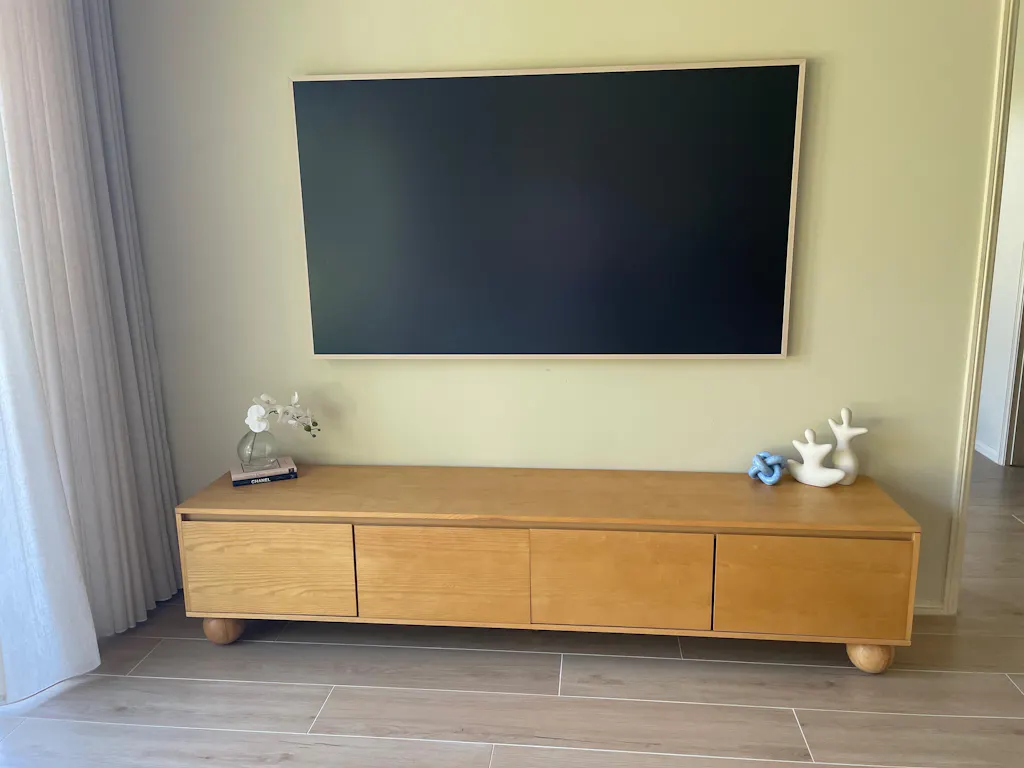 The Ballico TV Unit is designed with four spacious cabinets, offering ample storage that keeps your living space tidy and serene. The clean lines and hidden storage emphasize the unit’s minimalist design, contributing to a clutter-free environment that embodies Japandi’s tranquil aesthetic.