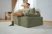 Cushie Modular Sofa Bed transforms from a stylish seat to a cozy bed in seconds—just flip and snooze. Unlike traditional sleeper sofas with noisy metal frames and complex pull-outs, Cushie keeps it simple and silent.