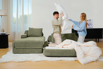 Cushie converts to a true Twin, Full, Queen, or King-sized mattress surface. Check each model for exact measurements.