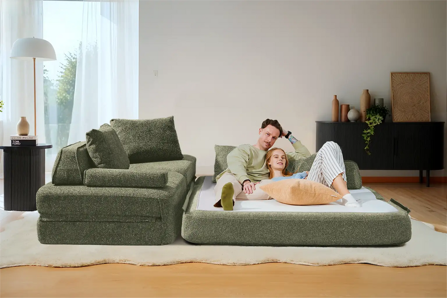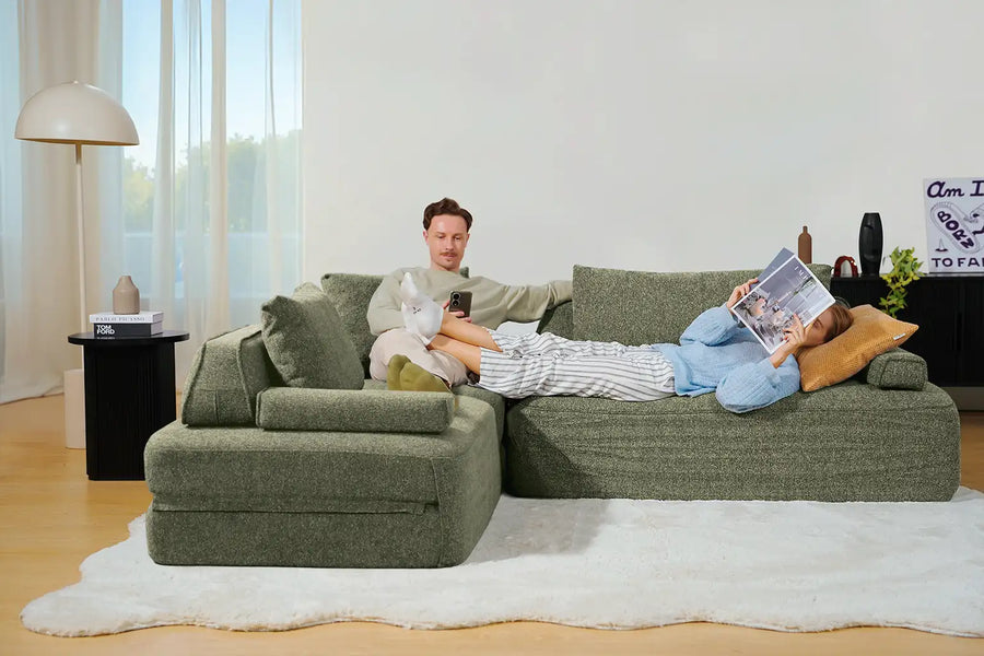 Cushie Modular Sofa Bed transforms from a stylish seat to a cozy bed in seconds—just flip and snooze. Unlike traditional sleeper sofas with noisy metal frames and complex pull-outs, Cushie keeps it simple and silent.