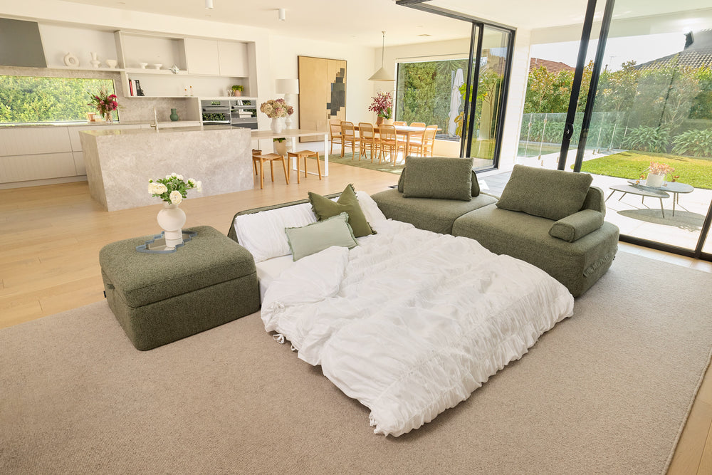 Cushie Modular Sofa Bed, the sofa bed brand that went viral in the USA is now on Aussie shores, available exclusively at Lifely. The first modular sleeper sofa of its kind, you'll fall in love with the comfort, whether your sitting or sleeping. Engineered with pocket springs and memory foam, it's a real bed and a real sofa. Being lightweight and flexible, the modular design adapts to your home and grows with you. Spill and stain resistant, machine-washable covers also make keeping Cushie Modular Sofa Bed fresh as easy as can be.