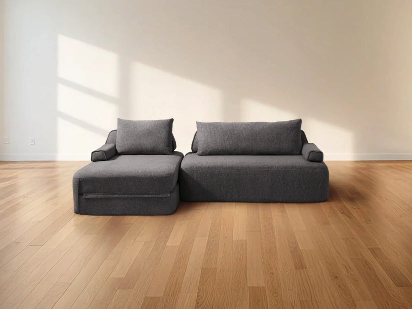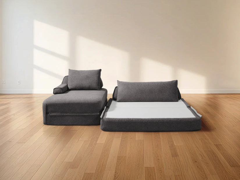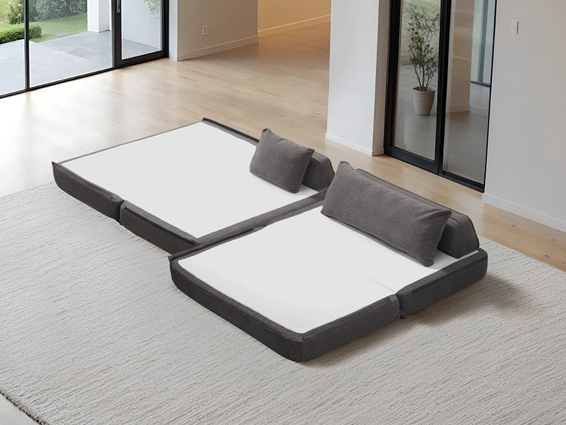 Cushie Modular Sofa Bed transforms from a stylish seat to a cozy bed in seconds—just flip and snooze. Unlike traditional sleeper sofas with noisy metal frames and complex pull-outs, Cushie keeps it simple and silent.