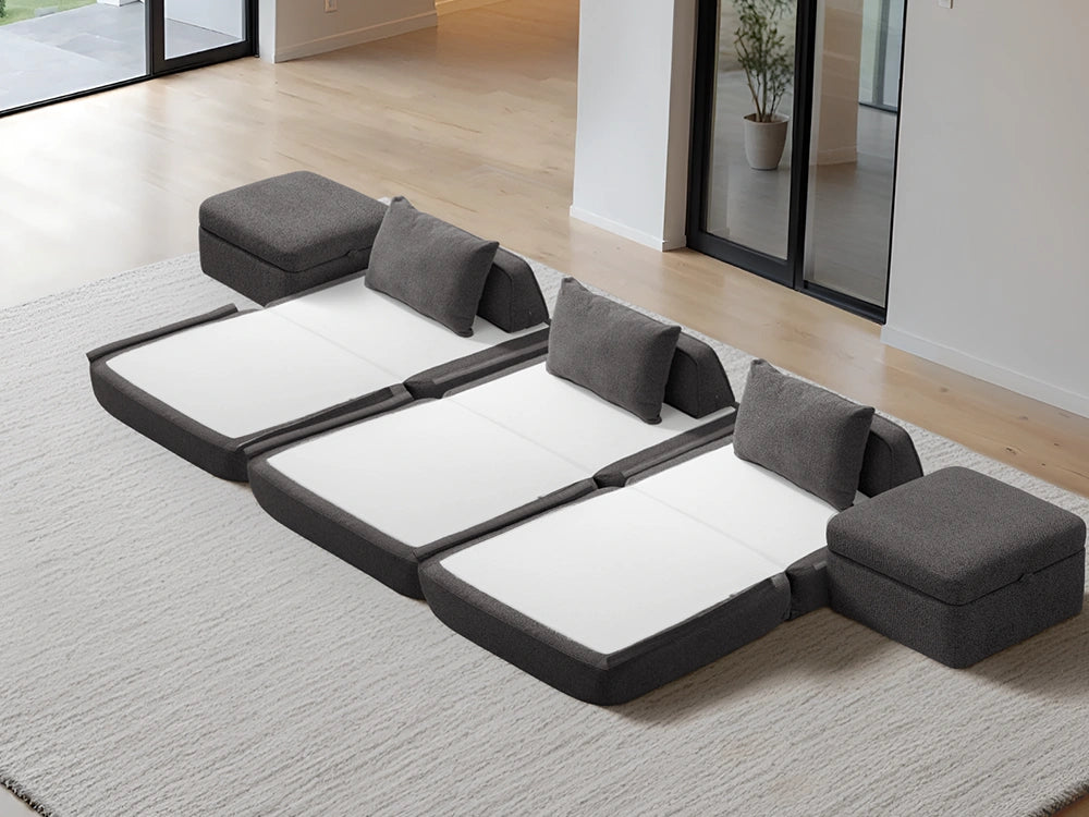 Cushie Modular Sofa Bed transforms from a stylish seat to a cozy bed in seconds—just flip and snooze. Unlike traditional sleeper sofas with noisy metal frames and complex pull-outs, Cushie keeps it simple and silent.