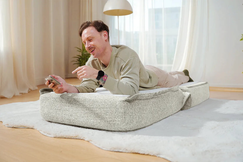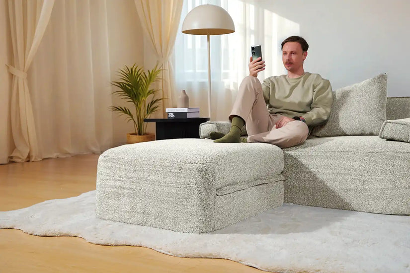 Cushie Modular Sofa Bed transforms from a stylish seat to a cozy bed in seconds—just flip and snooze. Unlike traditional sleeper sofas with noisy metal frames and complex pull-outs, Cushie keeps it simple and silent.
