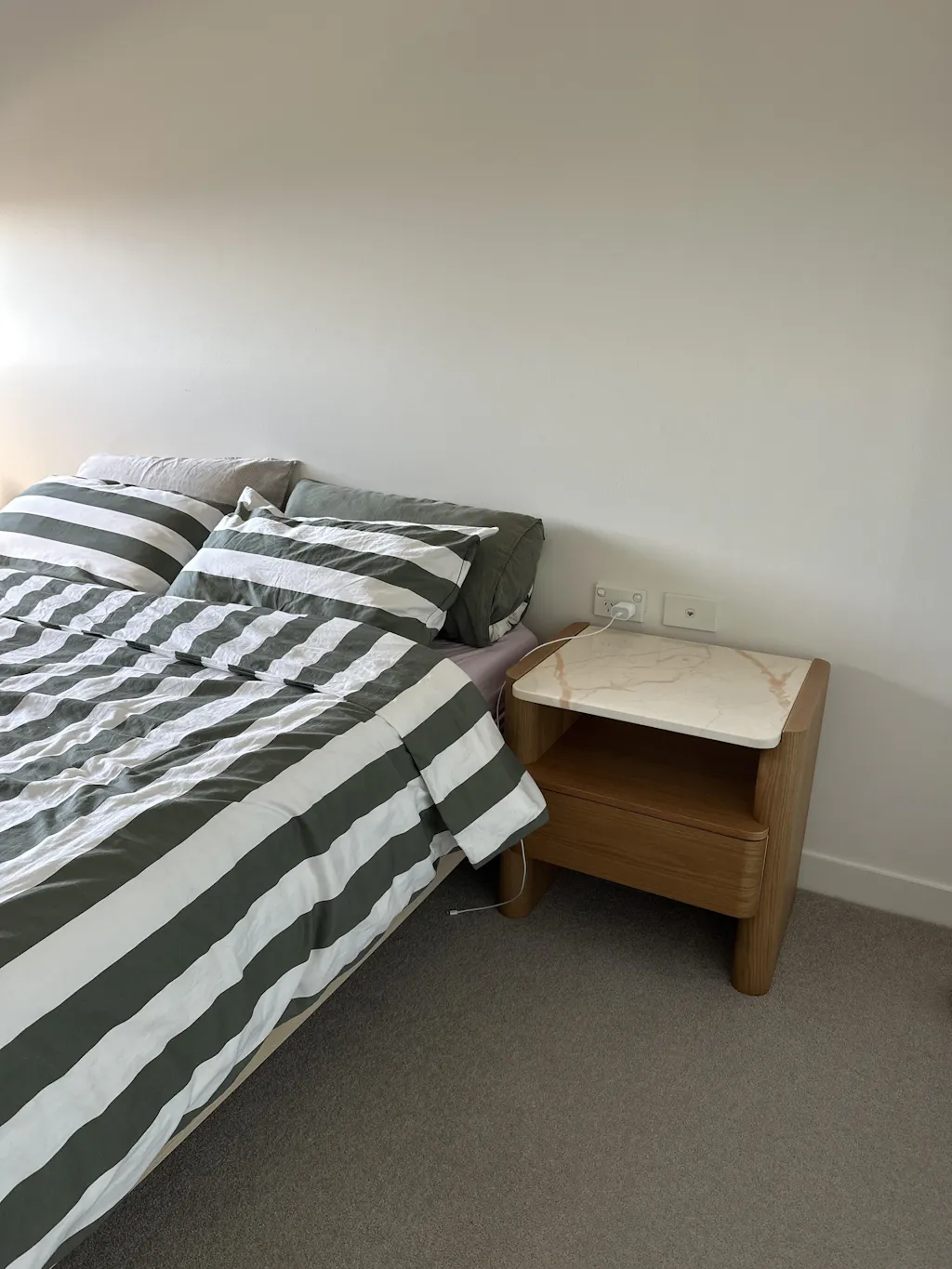 Designed with a subtle curvature and clean lines, this bedside table embodies modern refinement. Its softened edges bring a sense of warmth and approachability while maintaining a distinctly premium aesthetic.