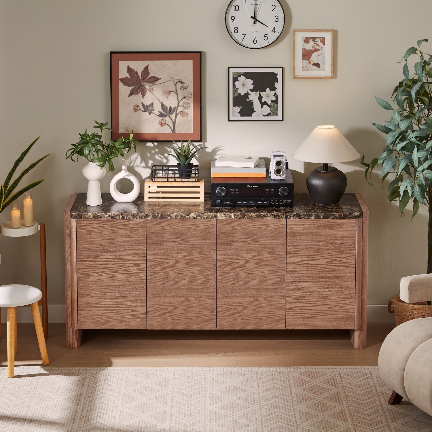 No harsh edges here. From the softened corners to the gentle arc of the legs, the sideboard’s curved details bring an inviting silhouette that feels modern yet approachable. It’s a subtle design twist that catches the eye without stealing the scene.