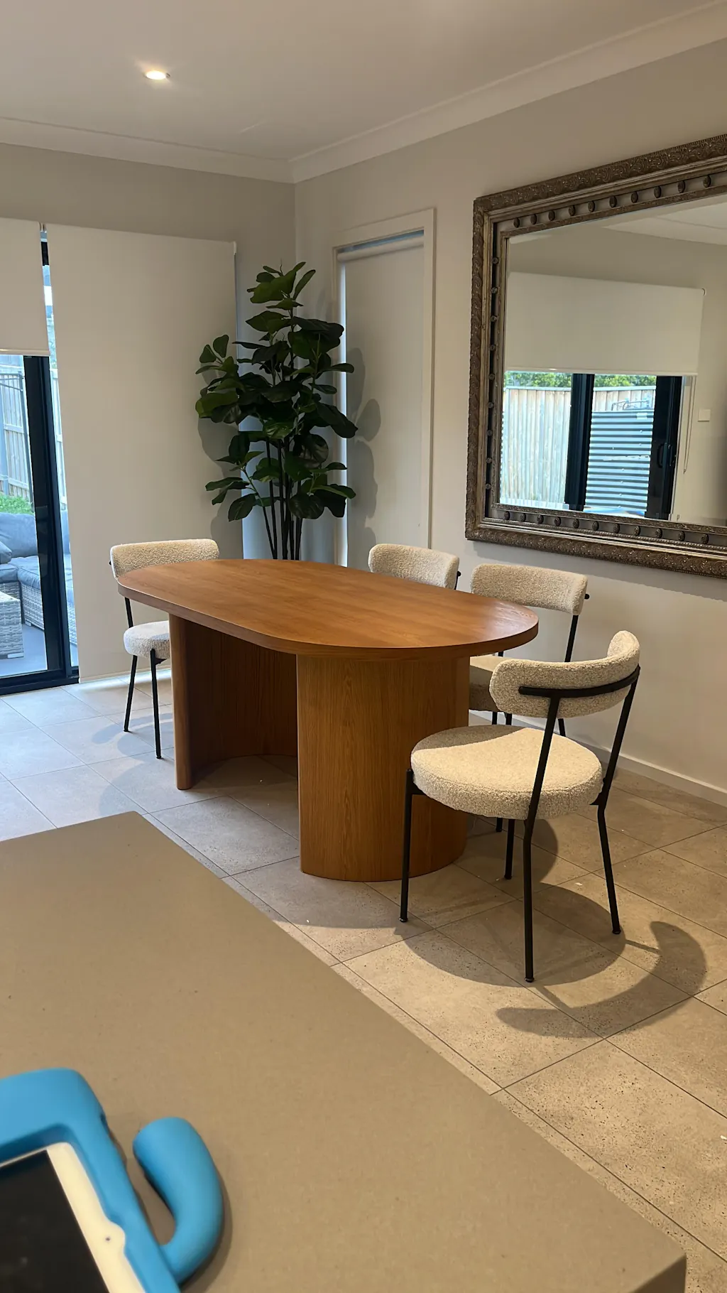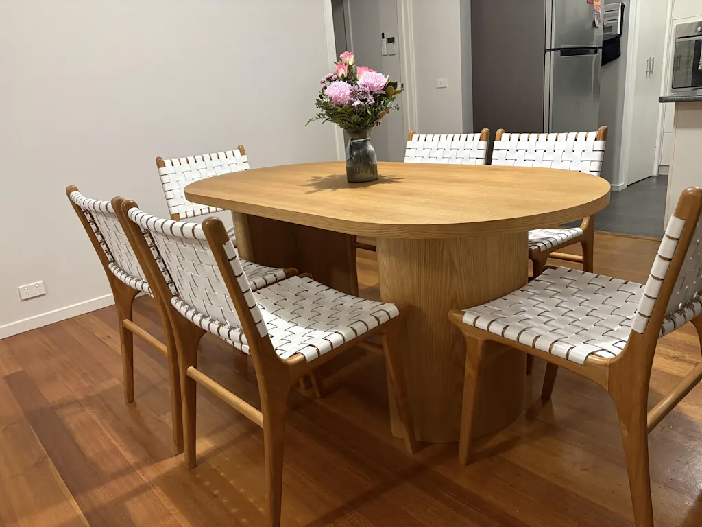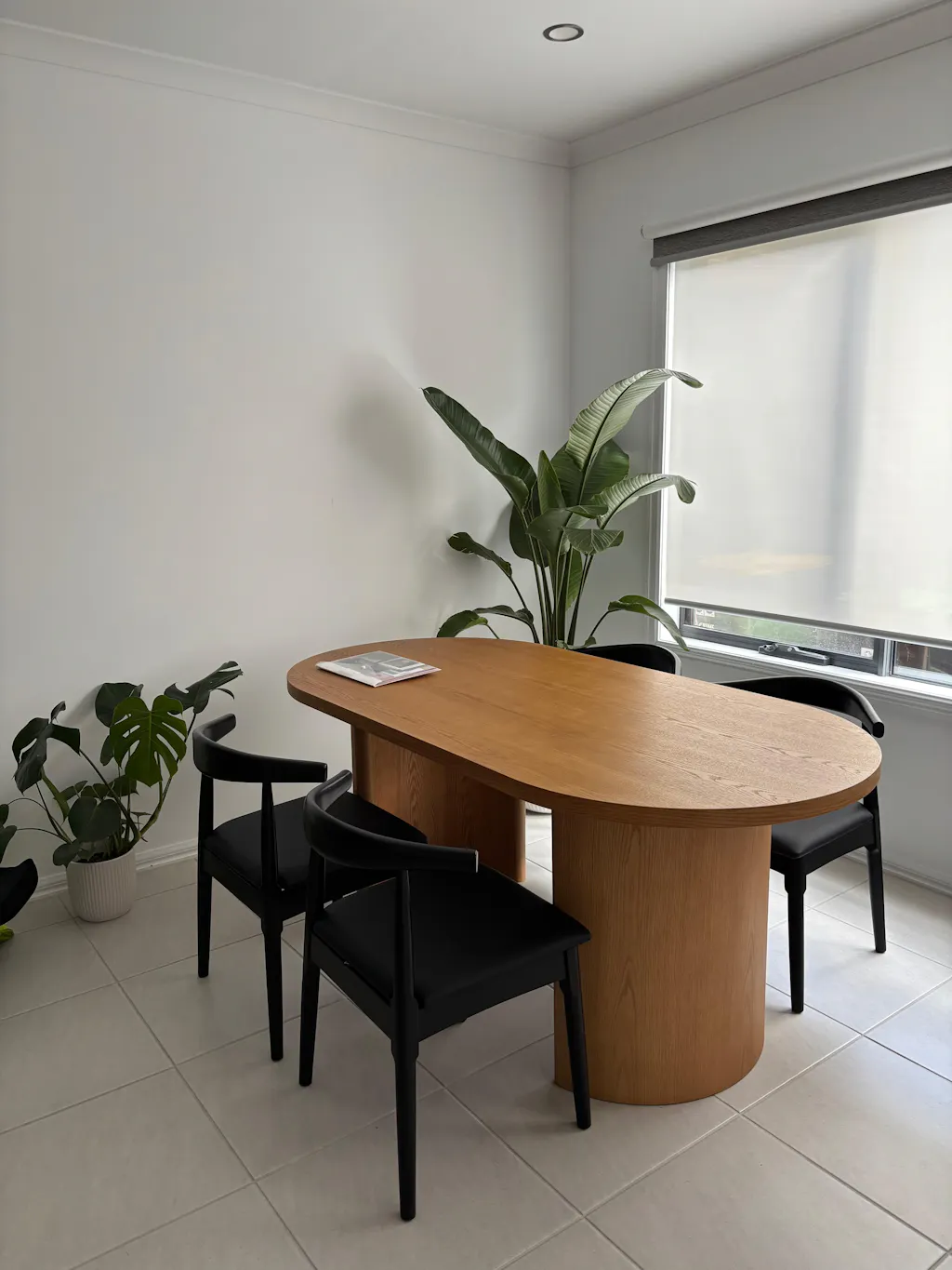 The Hudson dining table's oval shape and concave slab legs add a trendy design statement without overpowering the rest of your decor.