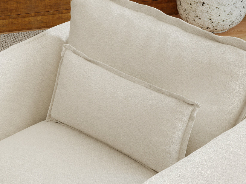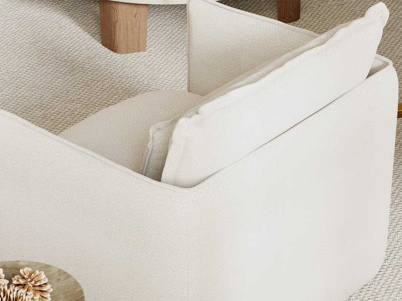 Back cushion and other pillows made from synthetic materials like polyester or polypropylene. These fibers are engineered to mimic the softness and comfort of natural materials like down and feathers, making them an affordable and practical choice for sofas.
