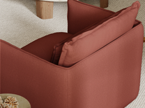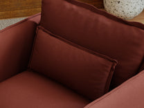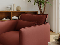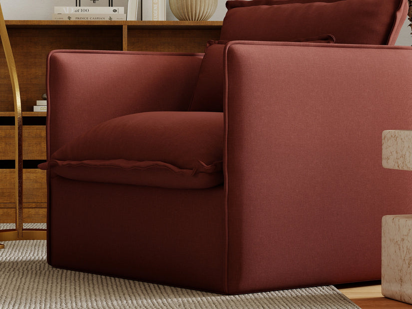 Our sofa is designed to be medium firm with a relaxed seating comfort, with an extra small pillow for lumber support.
