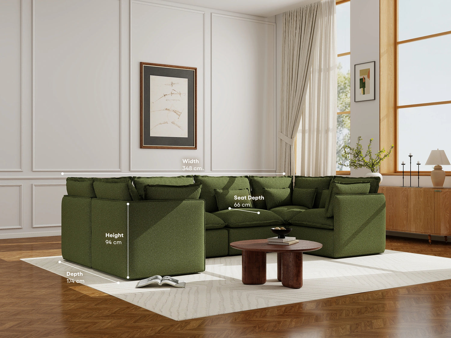 I originally got the 4 seater, I’ve since added two more seats and 2 ottomans. I have 2 toddlers and a dog (and a tradie) AND the white version and I am super impressed with the way it spot cleans. I’ve gotten pen, raspberry and chocolate off without having to wash it in the machine. The pillows get softer everytime we sit on it and it’s firm enough that it has decent support in the back. I hope they bring out more colours! Maybe boucle grey?? Or a chocolate! It has not disappointed me yet!