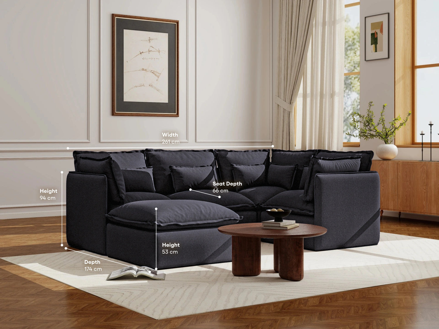 Ottoman: 86W x 86D x 51H (cm)
