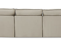 I originally got the 4 seater, I’ve since added two more seats and 2 ottomans. I have 2 toddlers and a dog (and a tradie) AND the white version and I am super impressed with the way it spot cleans. I’ve gotten pen, raspberry and chocolate off without having to wash it in the machine. The pillows get softer everytime we sit on it and it’s firm enough that it has decent support in the back. I hope they bring out more colours! Maybe boucle grey?? Or a chocolate! It has not disappointed me yet!
