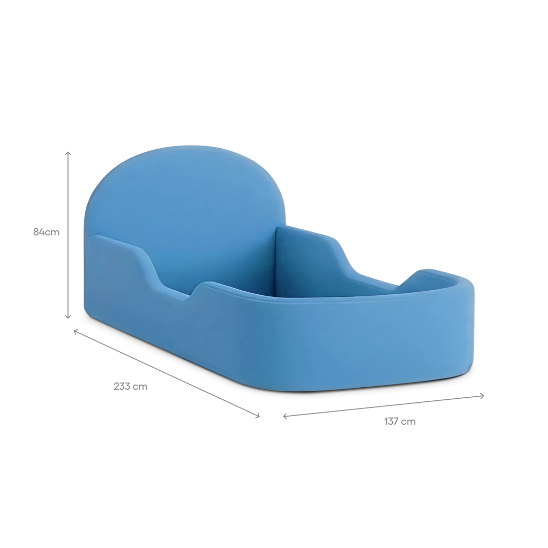 Built for Big Dreams & Little Accidents. Meet the bed that understands real life with real kids. Designed with soft, rounded edges and zero hard materials, the Little Lifely King Single Bed (Dusty Blue) keeps bumps, bruises, and bedtime stress at bay. Its low-to-the-ground design makes it perfect for toddlers learning independence — without compromising on safety.