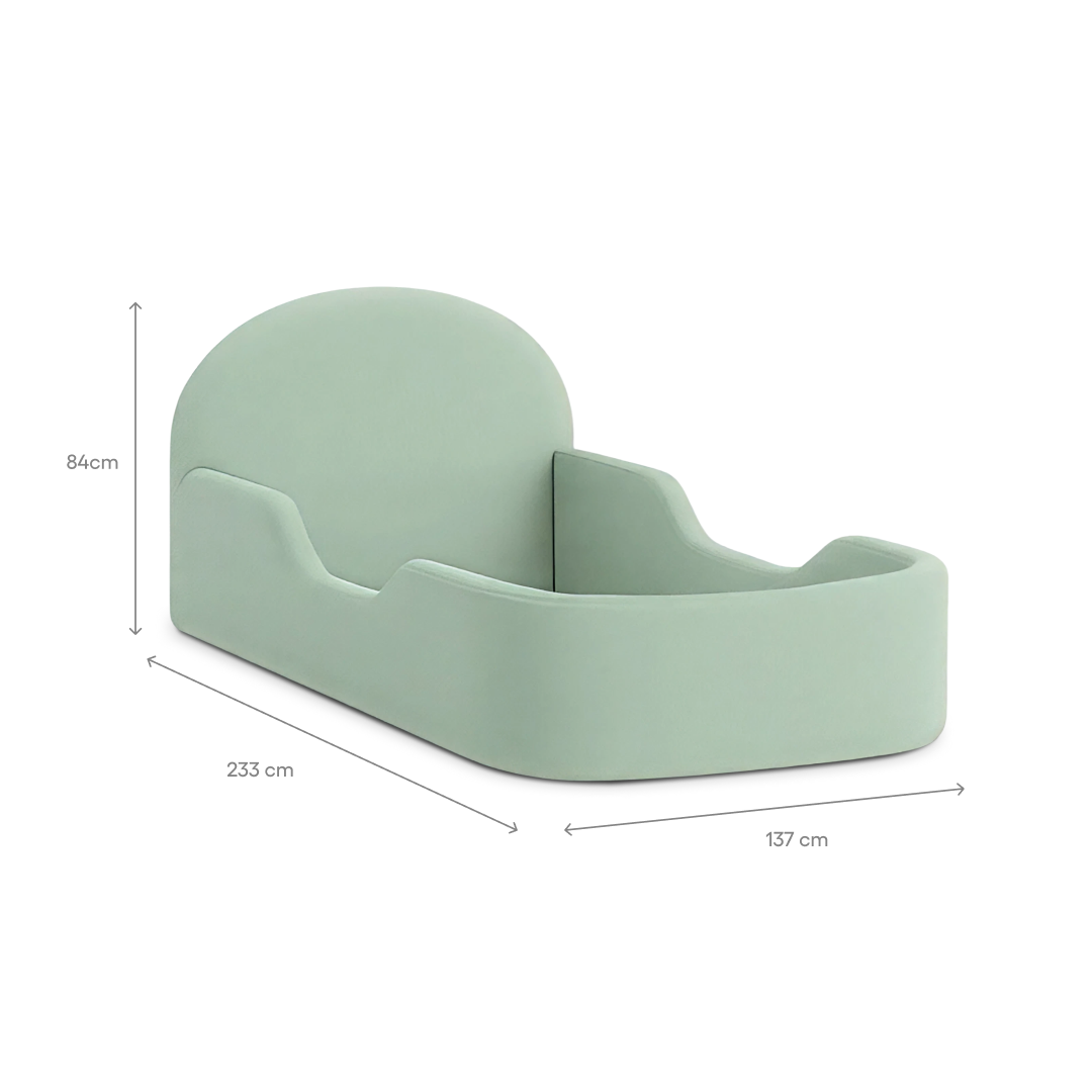 Built for Big Dreams & Little Accidents. Meet the bed that understands real life with real kids. Designed with soft, rounded edges and zero hard materials, the Little Lifely King Single Bed (Pistachio) keeps bumps, bruises, and bedtime stress at bay. Its low-to-the-ground design makes it perfect for toddlers learning independence — without compromising on safety.