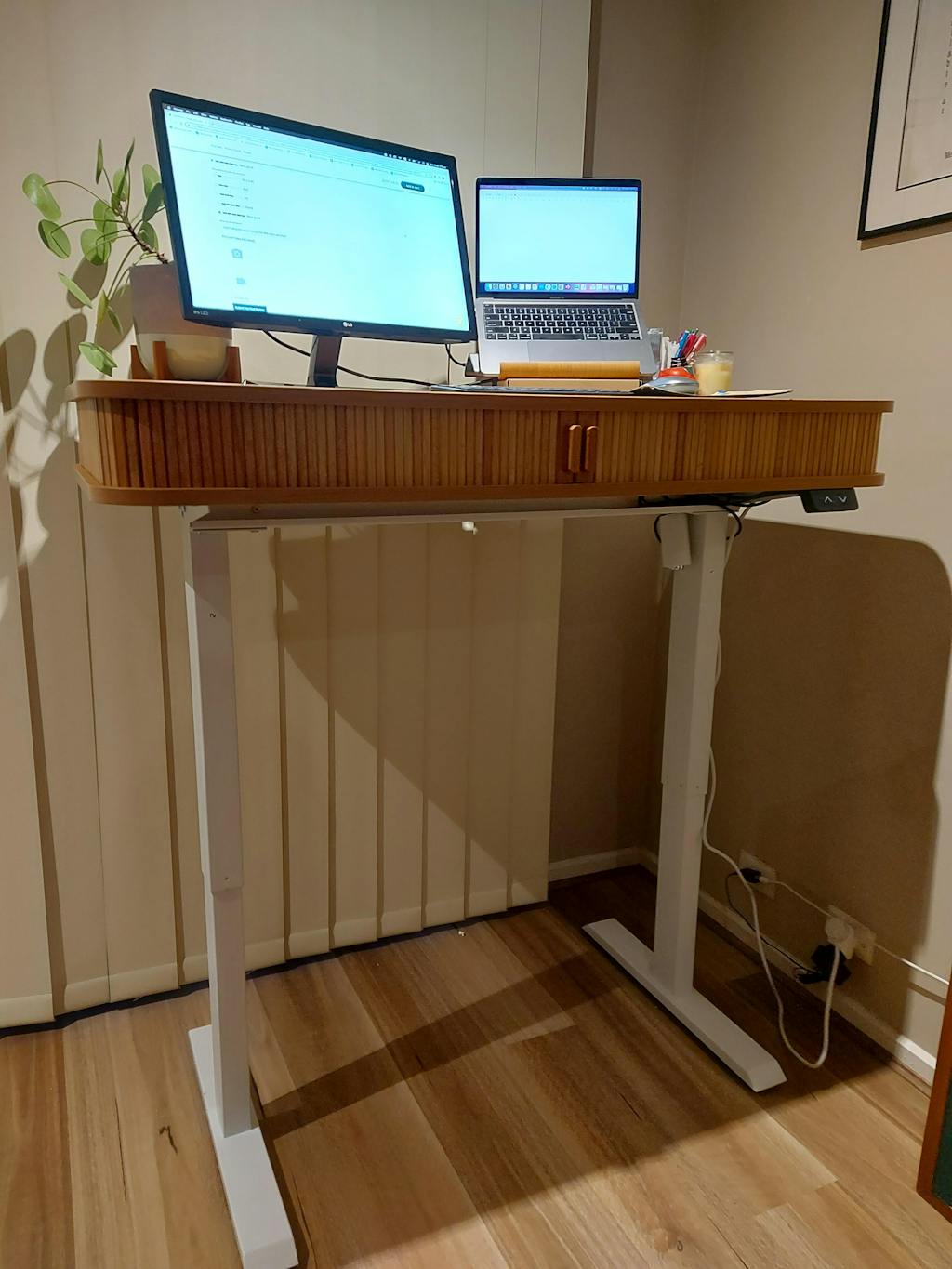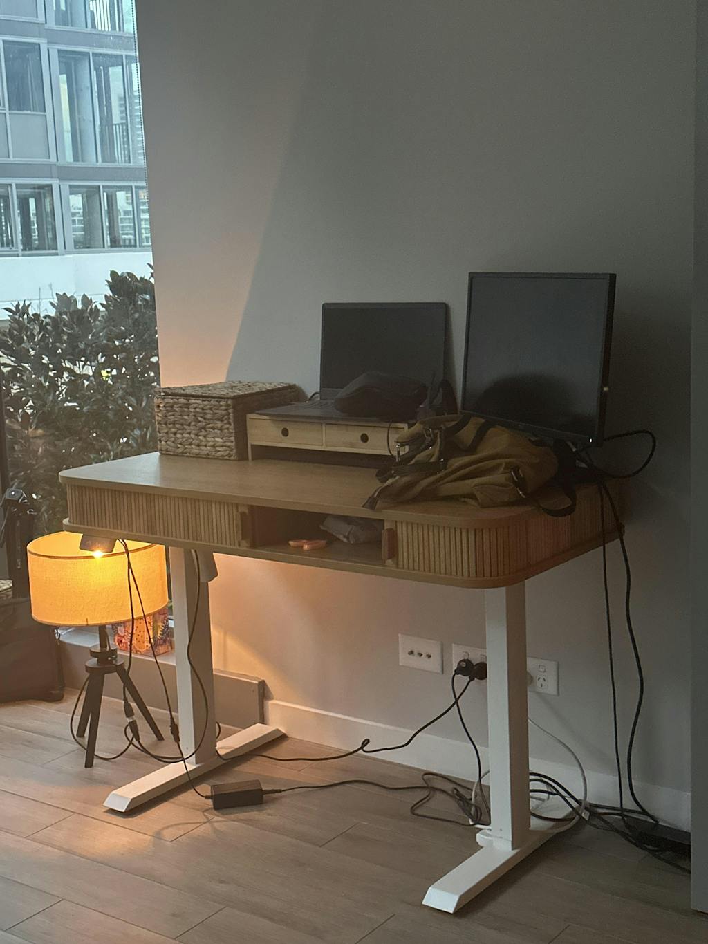 Who said that functionality needs to be boring? With its elegant textural details and earthy oak colour, the Tate electric height adjustable desk is a polished and practical addition wherever you need it - your home office, bedroom, or even living room - without disturbing your Japandi or mid-century style.
