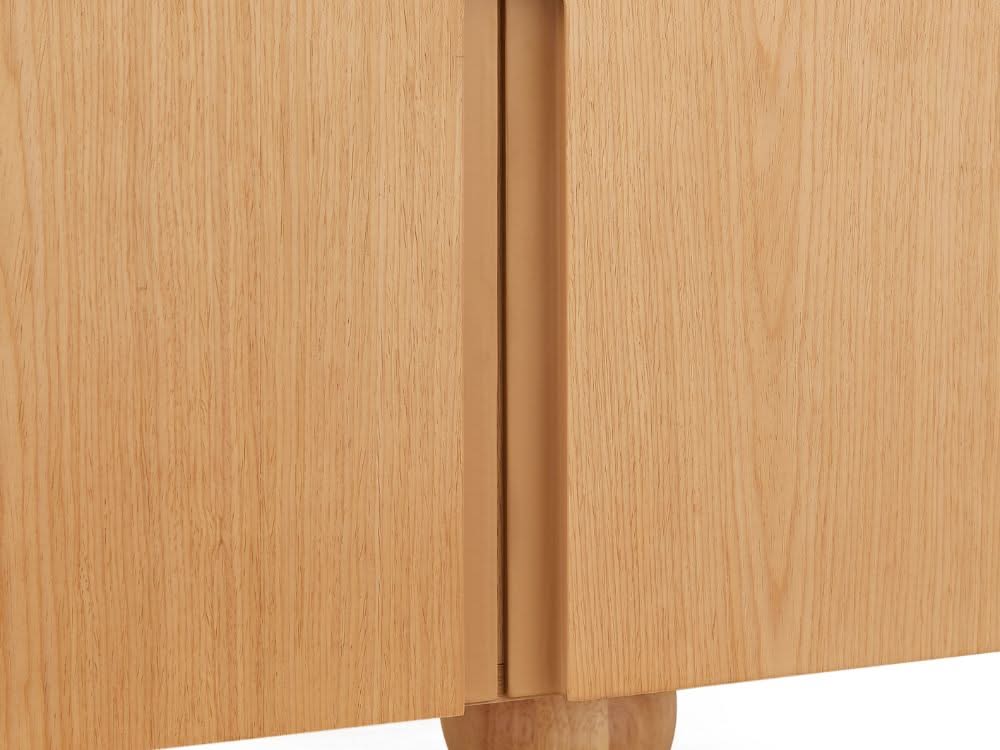 At the forefront of contemporary furniture trends, the rounded wooden legs of the Theo TV Unit introduce an artistic yet functional touch. This curved design element brings a sense of lightness, elevating the overall look while enhancing structural stability. The solid wood craftsmanship ensures both durability and timeless appeal.