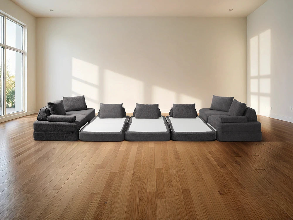 Cushie Modular Sofa Bed transforms from a stylish seat to a cozy bed in seconds—just flip and snooze. Unlike traditional sleeper sofas with noisy metal frames and complex pull-outs, Cushie keeps it simple and silent.